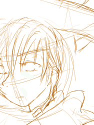 ああん?んなもん、いつも取ってるに決まってんだろ。……すみません、いつもの落書きとかは殆どアタリ引いてません。今回のはタダの見栄と上半身のポーズの問題。しかも、殆ど無視してるし。頭の造形が変なのは俺が頭の形が絶壁だからだっての!これでも絵的には直そうって毎回頑張ってんだってば!ほっといてくれ。