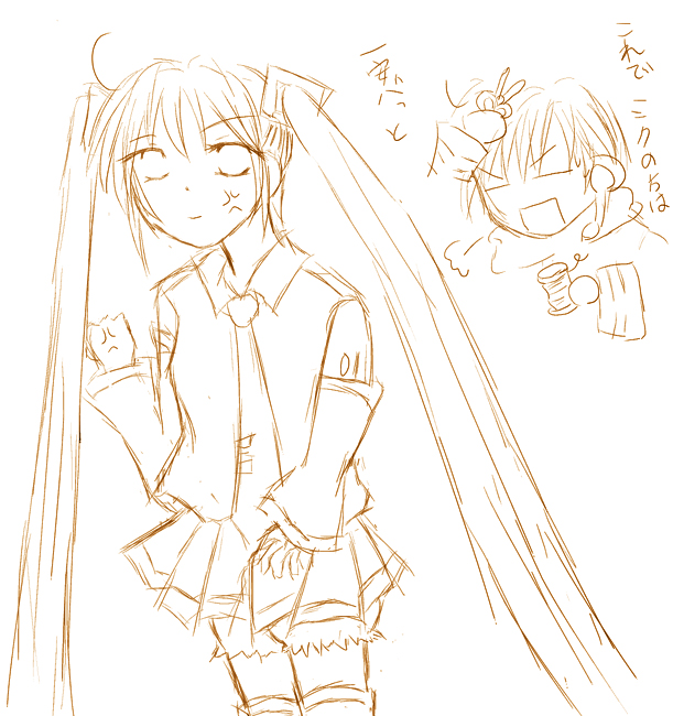 きっとね、「あら、オヤツの時間だわ」って言った次の瞬間に、ミクさんが兄さんの所まで来て、「私実は生きてたの、リンちゃん何も悪くないの。悪いのはみんなこの大臣さんなの」って。……いや本当、短絡思考ですみません。