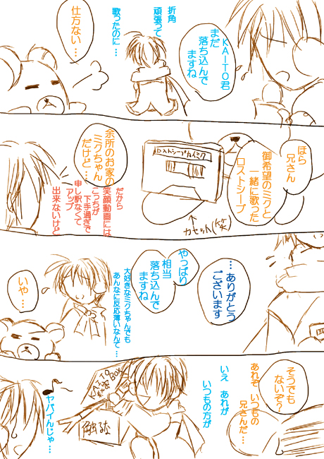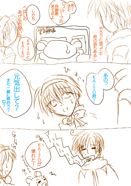 KAITO「でも、捨てるのは勿体無いので、記念にこのミクとのロストシープのデータだけは貰っておきます(くまのニヨニヨとした視線に気付く)……ほら早く、DTMの勉強し直してきて下さい!」