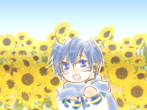 KAITO「うわー、マスター。一面の向日葵畑、凄いですね!来年は絶対ミクも一緒に連れて来ましょうね!」