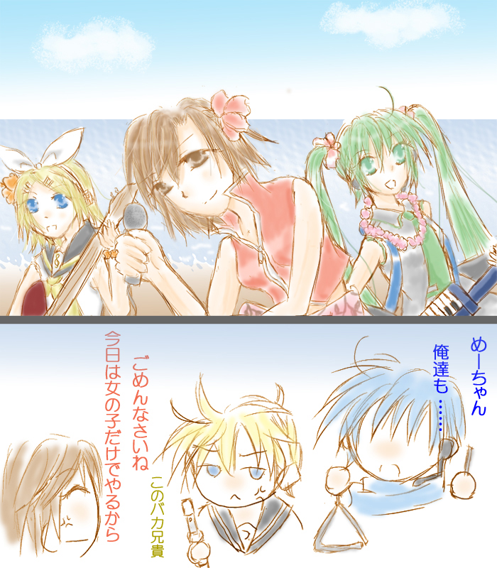 KAITO「……(怒)まあ、今回は仕方ないですね。めーちゃんもミクもリンも、例え絵だけとは云え、沖縄行けて嬉しかったみたいですし。所で、ウチには何でめーちゃんいないんですか?ミクやリンレンはスペック的に無理だってのは前に聞きましたが」