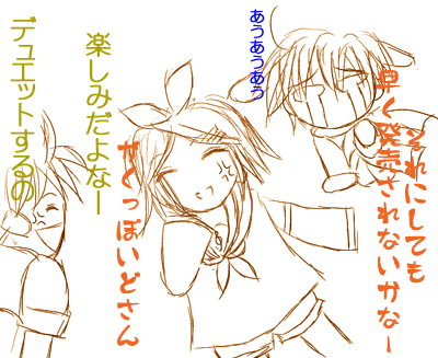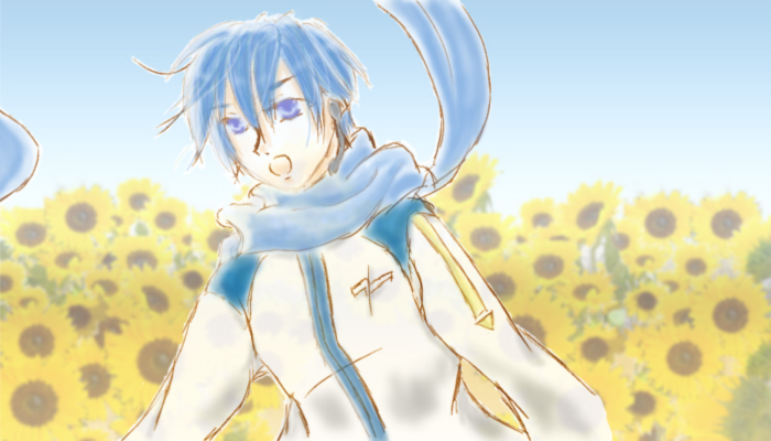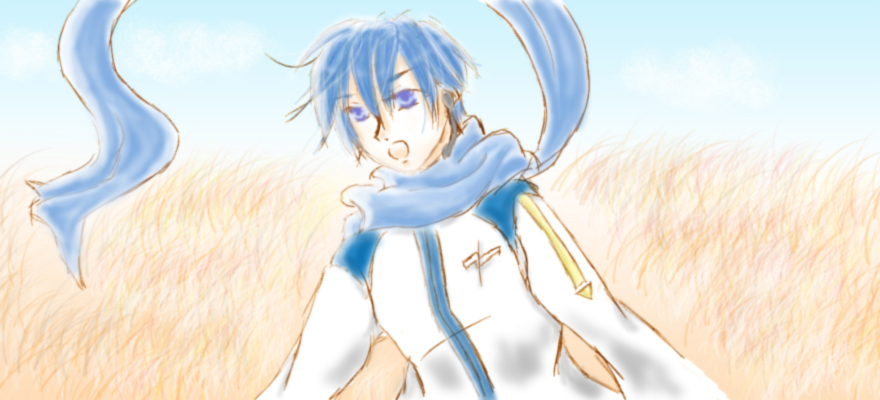 え?左手一発描きな上に、何処かで見た様なデザインだ?何、言ってるんですか。これがKAITOに見えるって?どんな目してるんですか!……はい、本当の本当にすみませんでした。……うん、「何だ。左手で描いた方が実はマシな絵描けるんじゃん」とか言わないで戴ければ幸いです。マジへこむから!本気でへこむから!