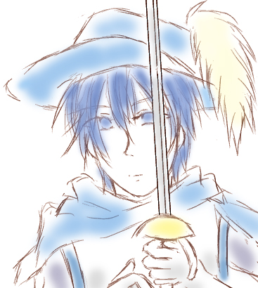 「黒うさP様の『カンタレラ』が大好きで、「ゴシック好きー、カイザレ兄さん描きたい!」と思って描き始めた筈なのですが、グ●グル先生に聞いても資料が見つからなくて、適当に描いていたら、イタリアと云うよりはおフランスっぽくなったので、そのまま三銃士に路線変更した次第ザンス。本当にすみません!絵師様やゴシック描ける人は本当に凄いなぁと思いました。