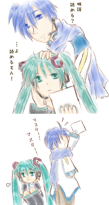 で、ピアプロさんに上げた時に「カイミクだろ!カプ絵(みたいなの)上げるな!」と怒られる事を覚悟していたら、それどころか「レッスン」とのタグを戴き、とても有り難かった覚えがあります。