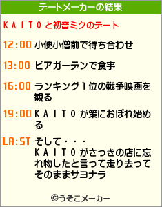 くま「兄さん、お詫びに、兄さんとミクちゃんのデート模様占った奴……」