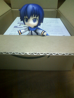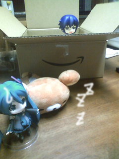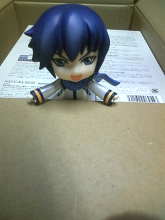 ストーKAITO「ふぁあああ、よく寝た。あれ?ねんどろいどのパッケージが開いてる。マスター、夜中に開けたのかな?まあ良いや。記念撮影、記念撮影っと♪」