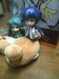 ストーKAITO「♪パパパパーン (青い猫型ロボットのアノ声で)『ねんどろいど~』クマが生意気にも触るなとか言ってたけど、スト●カーの辞書には自重って言葉なんか載ってないって事忘れてるだろ。あのクマ。さーて♪何から撮ろう♪」