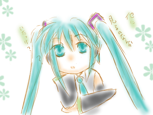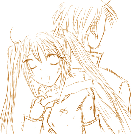 はい、ルカ様初描きです。無茶苦茶大変でした。この人細かいパーツ無ければ髪形とかは描きやすそうなのにな。これを言ったら、ミクちゃんに殺されそうですが、ある特定の部分が「ミクちゃんより大きく」と思ってたよりは小さく描いてごめんなさい(げ!あれは餅さんの所の初音ミク!)