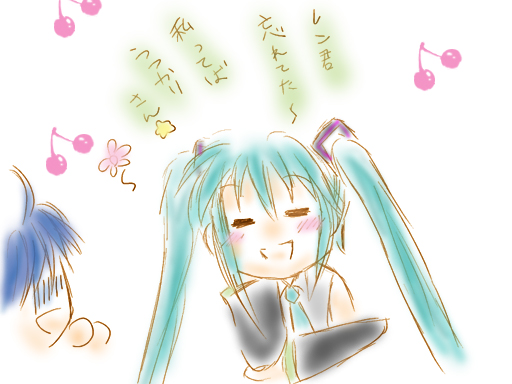KAITO「うわ~♪どんな歌ですか?悪ノP様には申し訳無い事しましたけれど、この間のKAIKOちゃんとのデュエットも楽しかったし、公開レベルまで行かなかったなんてマスターは言ってたけど、召使も楽しかったし。それに、本人許可してないし、色々ヤバイから公表は出来ないけれどってSさんは言ってましたけれど、僕の先輩のKAITOさんが歌ってた、一人で奏でる歌にミクちゃん合わせた奴も……」