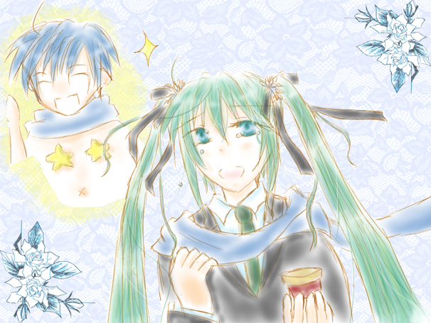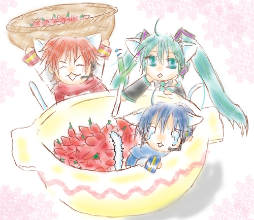 KAITO「ほら、ミクも双子も。遊んでるんだったら、ご馳走あげないよ?少し手伝ってくれるかな?」